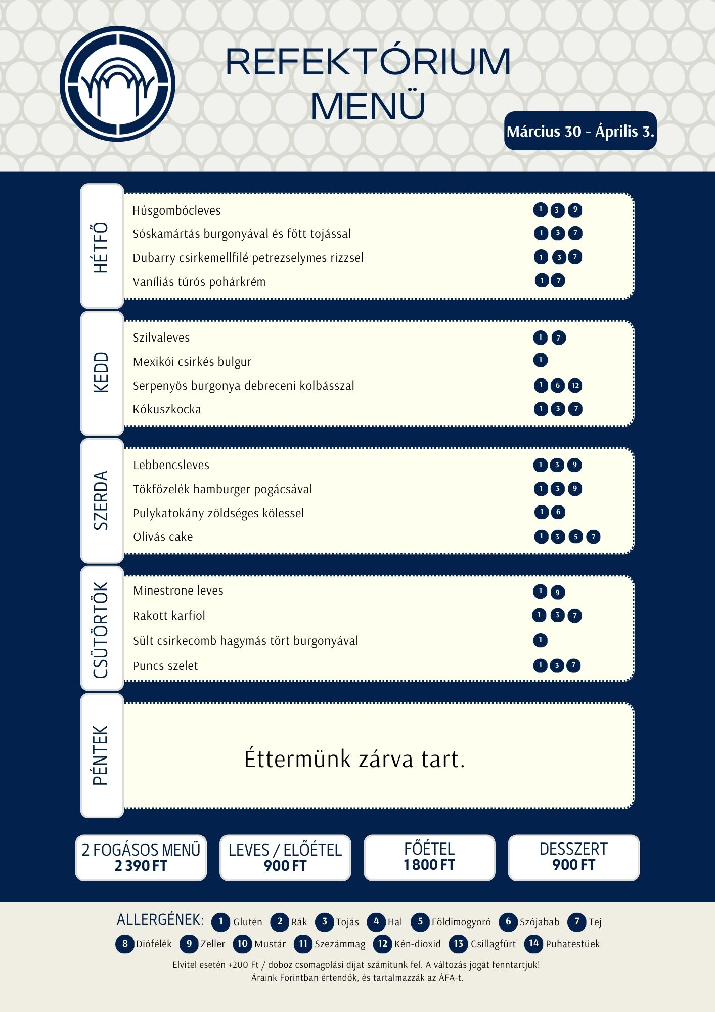 Menza Hétfő – Péntek 11:00-14:00
